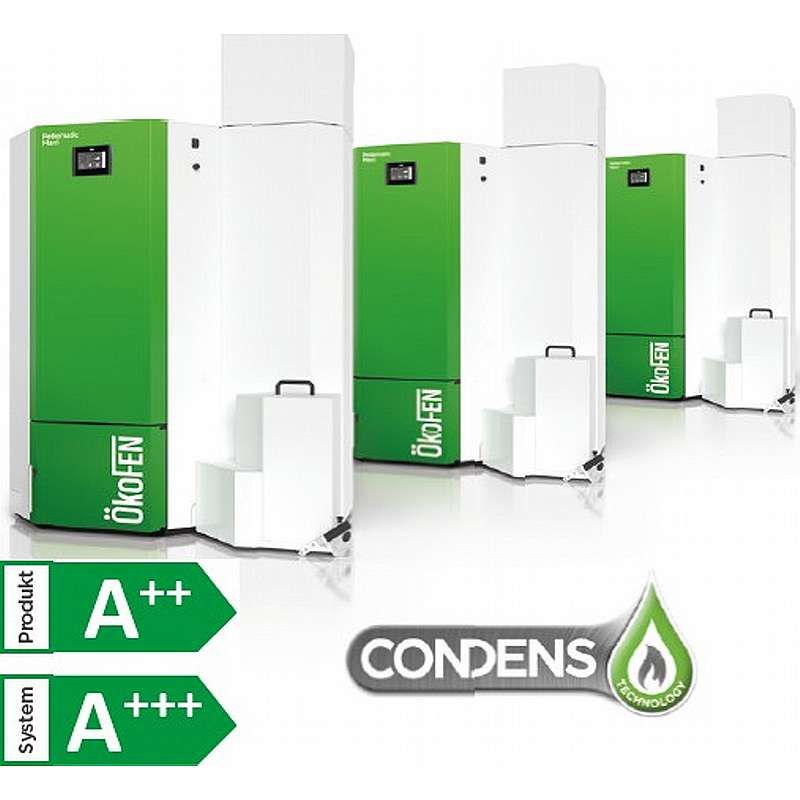 Pellematic Maxi Kaskade 19 - 192 kW BWT,- med pillesug. Kaskadeløsning til opvarming af store bygninger, virksomheder, skoler, børnehave og andre institutioner. Med kondenserende varmeveksler  kan man opnå meget høje virkningsgrader. Fyret har ÖkoFENS specielt udviklede ECC forbrændingsteknologi med multisegment brændertallerken. Det hele er selvkørende og kræver intet dagligt vedligeholdelse.  Fuldautomatisk, automatisk daglig rens og intelligent varmestyring med brugervenligt display.