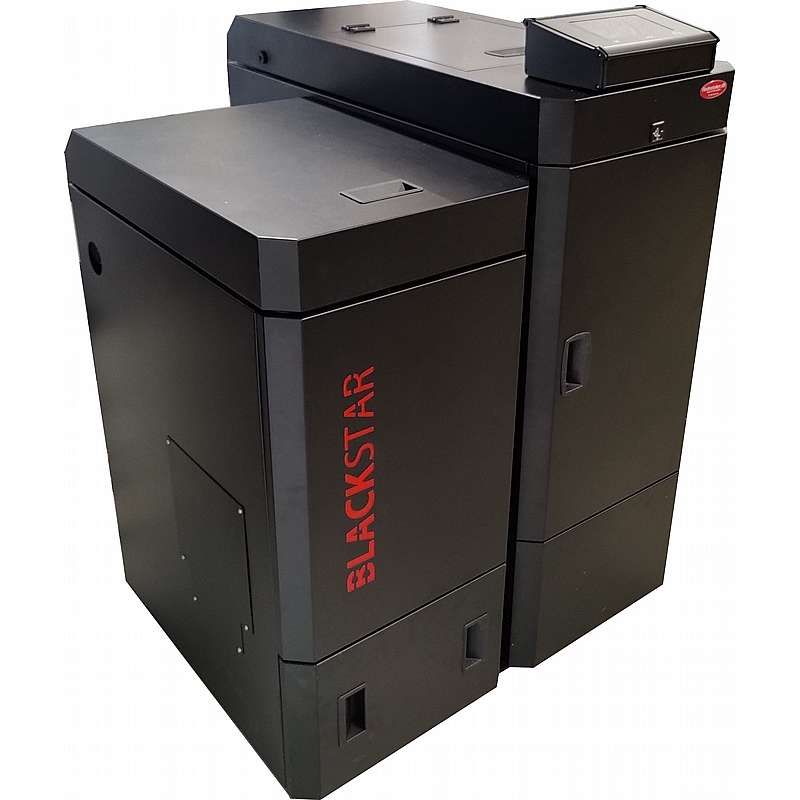 Dansk pillefyr produceret af NBE. God kvalitet, god pris og god garanti. Her er et pillefyr til en rigtig fornuftig pris. Med mange muligheder med den fleksible placering af kedel. Pillemagasinet er montere på siden af Blackstar Kedlen og har derfor ikke brug for ret meget gulvplads. Hele konstruktionen tænkt ned til den mindste detalje. God virkningsgrad på mellem 91-93 %.