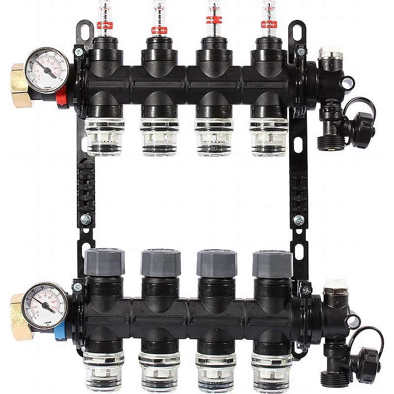 Løs gulvarmefordeler push med flowmeter til 16mm slanger