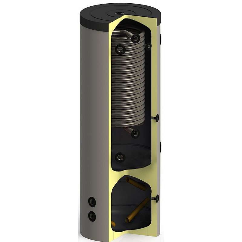 Kombibeholder - 300/100 Liter - med varmtvandsspiral 29 l/min - Ø65x1820mm
