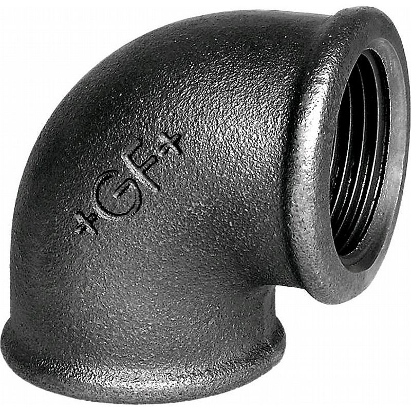 Vinkel 90°, 1 målsSorte og galvaniseret vinkler 90 grader med indvendigt / udvendigt gevind - 1-måls. vi har både Muffe / Muffe, Muffe / Nippel i mange forskellige størrelser i det kendte kvalitest brand +GF+ Georg Fischer.