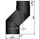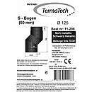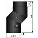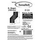 Sort røgrørsbøjning med en bøjning på 45°. Bøjningen er med indvendig diameter på Ø125 mm. Disse kvalitets røgrør er produceret af TermaTech.