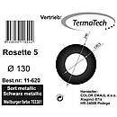 Sort røgrørsrosette med 4 fjedre. Rosetten passer til røgrør med indvendig diameter på Ø125 mm. Udviklet og produceret af TermaTech.